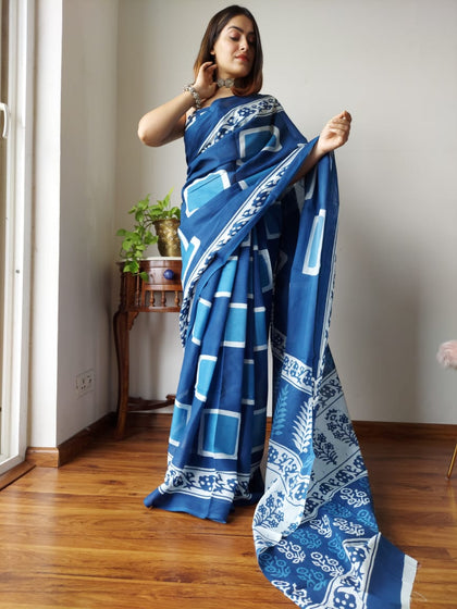 Bagru print sarees also referred to as Bagru Dabu woodblock prints, are renowned for their eco-friendliness. This hand block printing technique first developed in a small town called Bagru, in Rajasthan. The process involves the use of wooden handblocks with intricate motifs carved on them, which are then pressed onto the fabric to create the desired print. It is the use of natural dyes and colors in Bagru print sarees that makes them a popular choice among environmental enthusiasts.