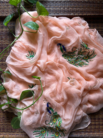 A chiffon saree's shade is an essential factor to consider. Chiffons in pastel colors are ideal for summer 2024, whereas brighter-colored chiffons with embroidered work are ideal for that office brunch. All sunset and evening celebrations call for chiffon drapes in the classic black, royal blue, and bottle or emerald green shades.