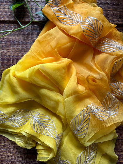 We have the most vibrant and exclusive collection of genuine chiffon or silk sarees at Jhakhas.com. If you want an all-year-round favorite, a beautiful chiffon saree is your go-to. The sarees are made of the highest quality cloth and include handmade zari work and needlework. Our new collection boasts brand-new colors, patterns, and work types in chiffon sarees.