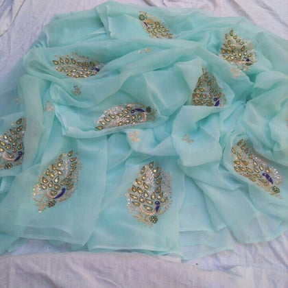 A chiffon saree's shade is an essential factor to consider. Chiffons in pastel colors are ideal for summer 2024, whereas brighter-colored chiffons with embroidered work are ideal for that office brunch. All sunset and evening celebrations call for chiffon drapes in the classic black, royal blue, and bottle or emerald green shades.
