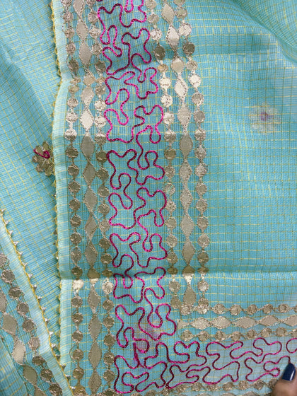 Amaltas- Blue Kota Doria Embroidery Suit With Dupatta