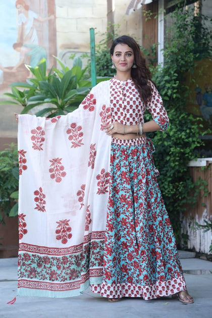 Bagru Print Flora lehenga choli Set