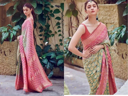 Banarasi sarees have been worn on various joyous occasions for generations. The regal aura of a Banarasi Saree, akin to bandhej dupattas and banarasi lehenga, makes it a favorite among brides. These sarees feature a unique geometric design that complements festive occasions and festivals.