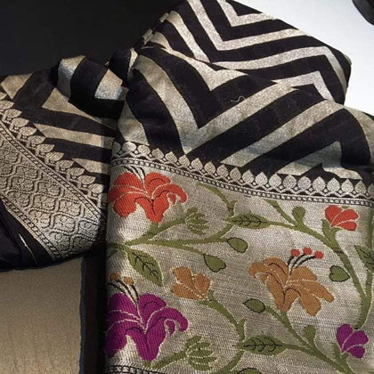 With origins in India's rich cultural past, Banarasi Silk has been mentioned in ancient texts like the Mahabharata and Buddhist scriptures dating back to the first century. Each Banarasi suit and saree was once exclusively woven for royalty, using genuine gold and silver threads and taking up to a year to complete.