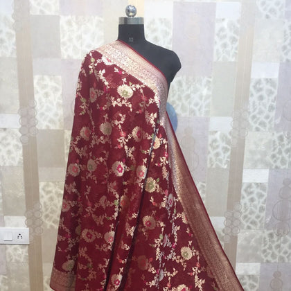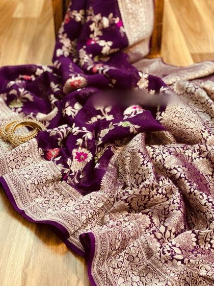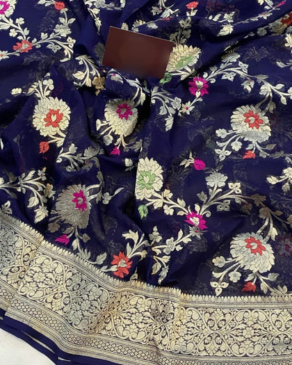 For today's modern Indian women, authentic banarasi georgette sarees are equally significant. The fabric is light, almost weightless, and can be adorned with embroidery and embellishments, giving them an edge over silk sarees or organza silk sarees.