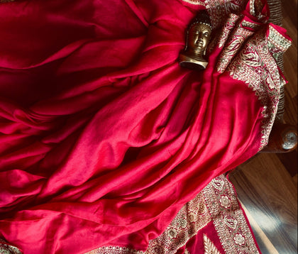 - North India: Boldly colored lehengas that are highly adorned with zari, sequins, and beads are in style. Brides frequently cover their heads with a red or maroon dupatta. Sarees made of banarasi silk are a classy and classic option.