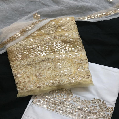 Saunter through the joyous verve in pastel or bright hues laced with gota grace and enchanted thread tones, a party full of joy and fall feelings capped with exquisite feasts and decor. Purchase some of the well-known chikankari gota salwar suits to add to your stylish wedding storey in a wonderful curation of grace and splendour, embellished with gota and sequins.