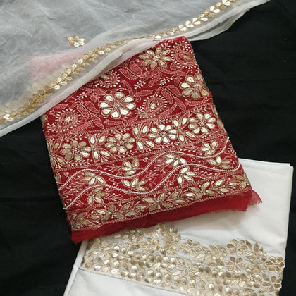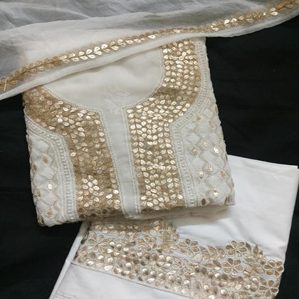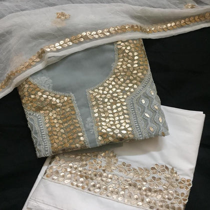 Check out a wide range of adaptable chikankari Gota suits that are ruling artisanal perfection and have been a popular choice for holidays and celebrations. Featuring gilded imprints, elaborate stitching, gota detailings, gathers, and sequin work made on rich silks, georgettes, and cotton, our spectacular selection of Jhakhas.com’ organza suits and silk salwar suits among other party wear suits and patterns is saturated in both jewel and subtle tones.