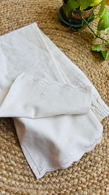 Cotton chikankari pants made by artisans in the traditional way are available in a wonderful selection at Jhakhas.com. They look elegant and charming while remaining airy and comfortable. These palazzo pants are ideal for any occasion where you want to show off your passion of fashion thanks to their beautiful and detailed chikankari motifs!
