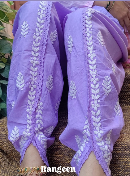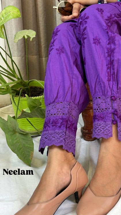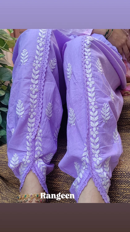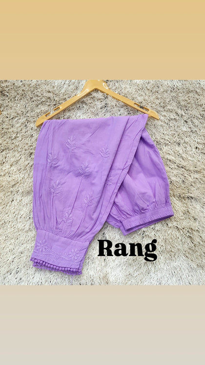 Cotton chikankari pants made by artisans in the traditional way are available in a wonderful selection at Jhakhas.com. They look elegant and charming while remaining airy and comfortable. These palazzo pants are ideal for any occasion where you want to show off your passion of fashion thanks to their beautiful and detailed chikankari motifs!