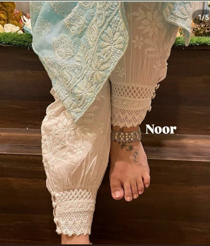 This style of art can be found on a wide range of clothes for both men and women. Long and short kurtas, tunics, chikankari sarees, Anarkalis, palazzo pants, chikankari pants, and Capri trousers, as well as a variety of accessories are included.