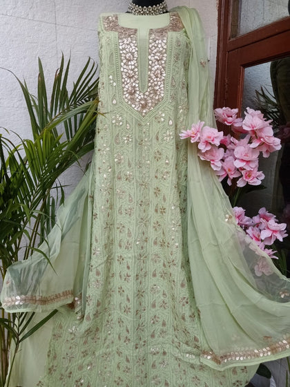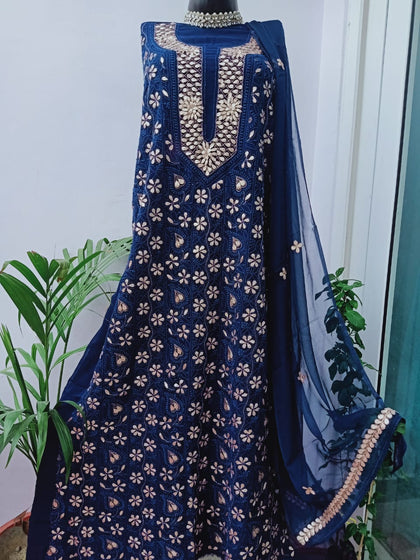 Jhakhas.com a well-known e-store to purchase trendy chikankari salwar suits online. Choose your favorite one and tell us your specifications, and we'll have a custom chikankari salwar suit send to your home.