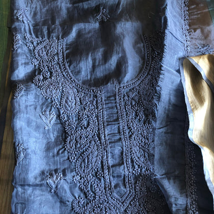 Dry cleaning is recommended for Lucknow Chikan embroidery, albeit this depends more on the fabric than the work. Silk sarees, for example, must be dry cleaned, but cotton salwar suits can be hand washed.