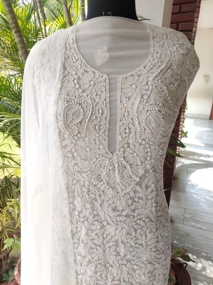 Chikankari is comparable to Shadow work, which is a white embroidery technique that fills motifs with herringbone stitches on the back of the fabric, creating a fine shadow on the front. Chikan craftsmanship, also known as "Lucknowi Chikan", is a 400-year-old skill that meaning "embroidery" in the literal sense. Modern embroidery techniques lack the subtle, sophisticated quality that the garment's simple and perfect handwork provides. The garment's key feature is its simplicity, and while designs have been added to make it appear more luxurious, the fabric remains simple and economical.