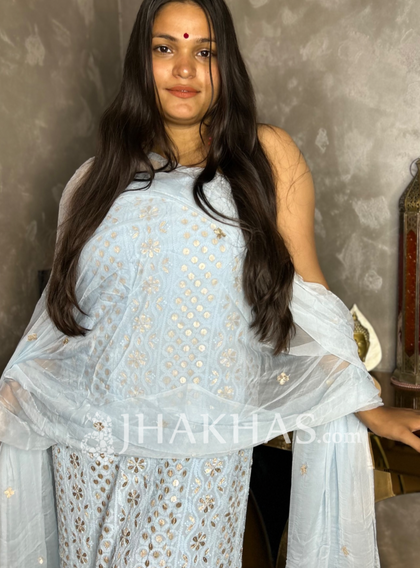 “Neel-Ghubar” Cloud Blue Chikankari Georgette Gota Salwar Suit