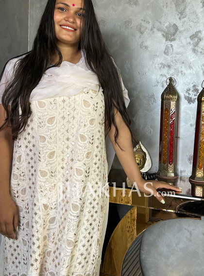 Noorzar - White Gold Chikankari Georgette Gota Salwar Suit