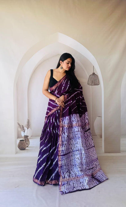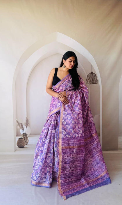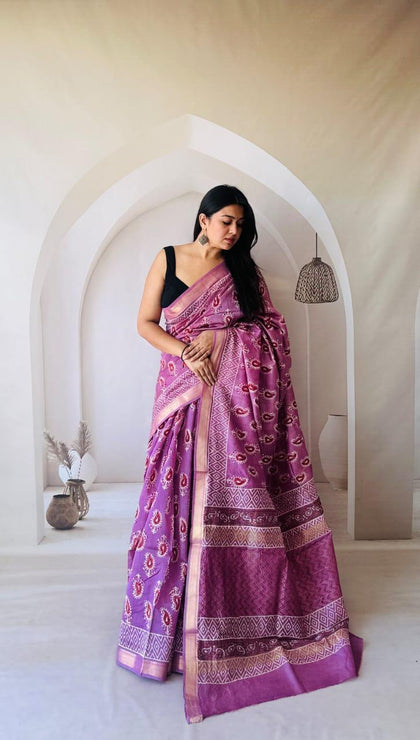 Purple Maheshwari Silk Bagru Hand Block Print Saree