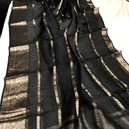 Royal Black Khaddi Banarasi Jaal Chiffon Saree