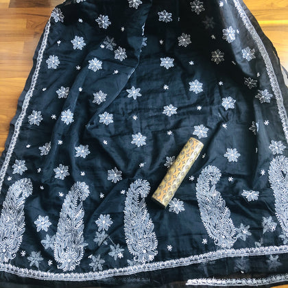 Black Chikankari Saree In Organza