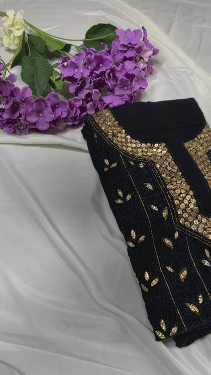 "Kali Shama" Black Beauty Georgette Chikankari Gota embroidery Unstitched salwar suit set