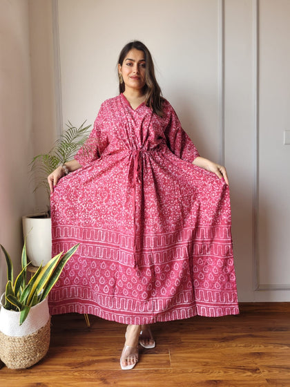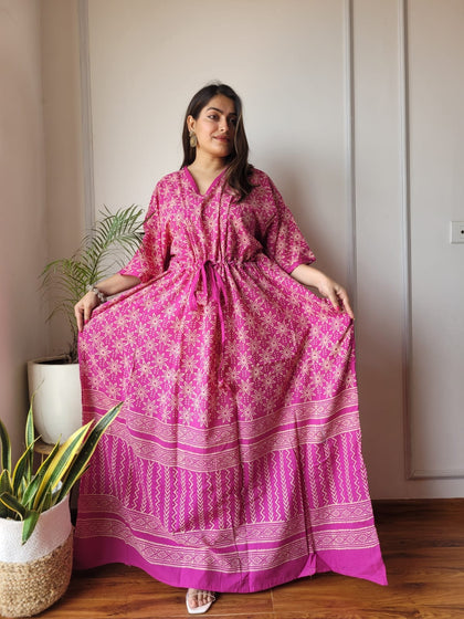 Find the best of workwear options along with a variety in patterns, colors and fabrics in Kaftans on Jhakhas. With global shipping available, purchasing your favourite outfits became a lot more easier. At Jhakhas we have multiple payment options as well because comfort and convenience of our customers come first. We also provide customizations in sarees and suits wherever required. Stay in touch with us over whatsapp or drop a message when you're purchasing your favourite addition to your wardrobe. A range of high quality, comfortable and affordable ethnic and daily wear delivered straight to your doorstep.