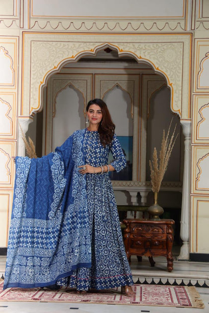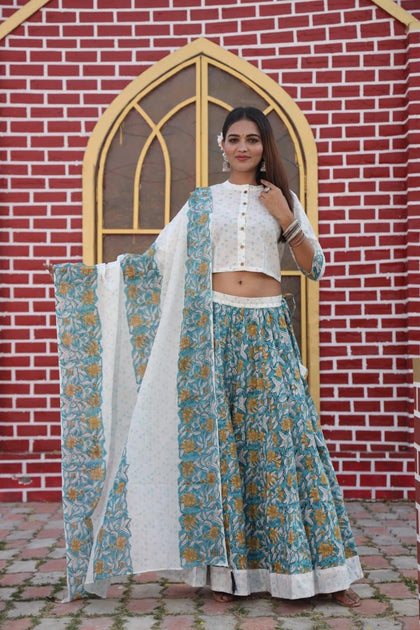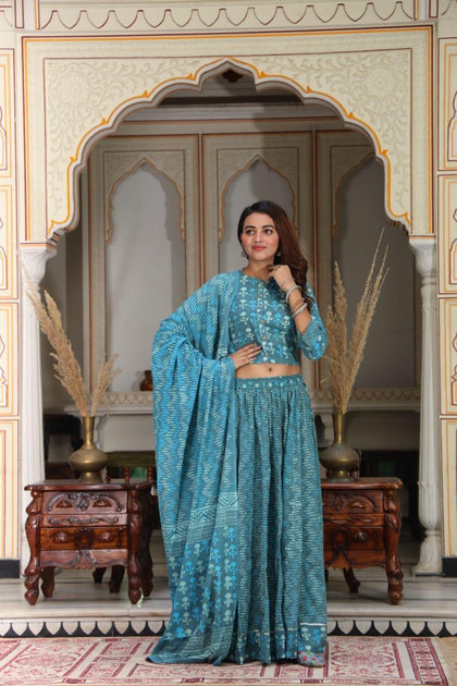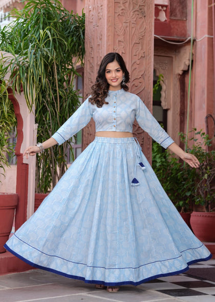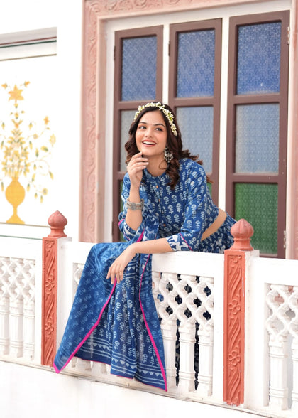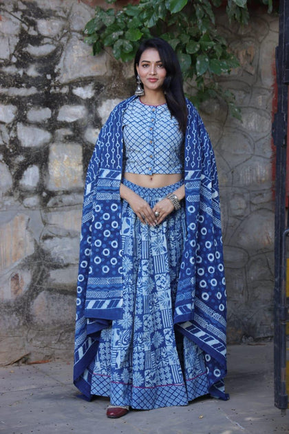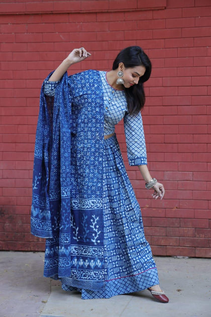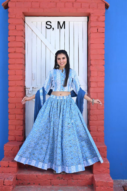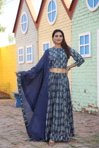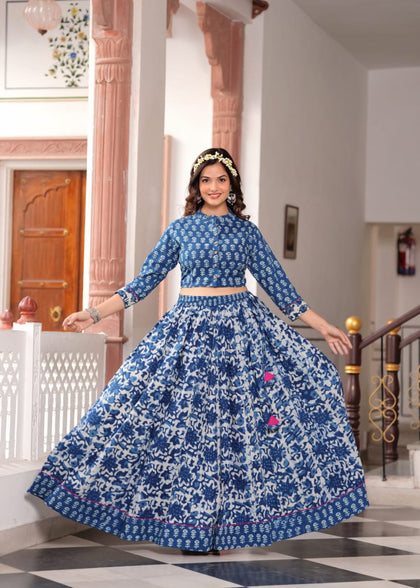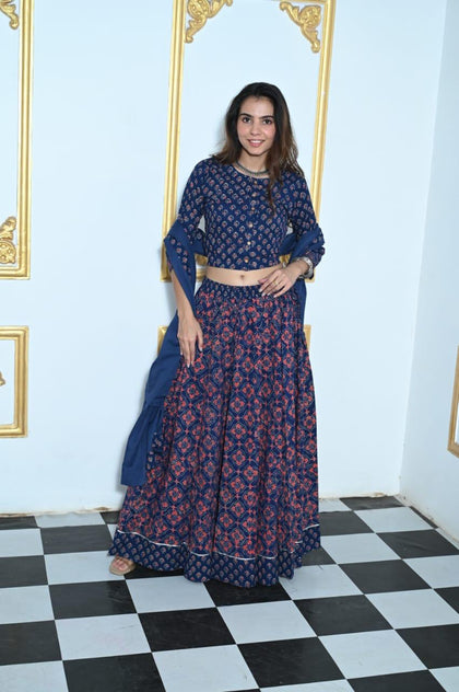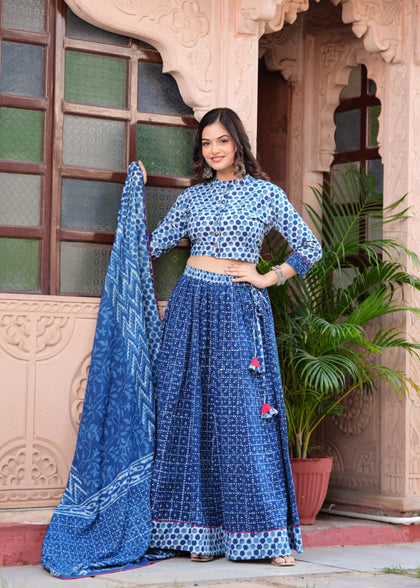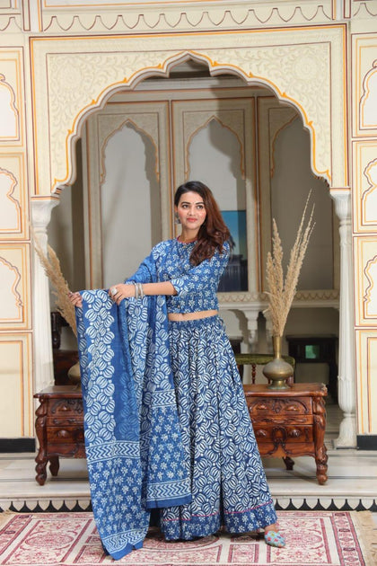 Sea Blue Colour Bagru Print Flora lehenga choli Set