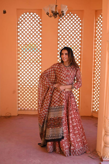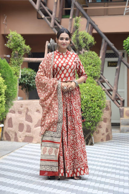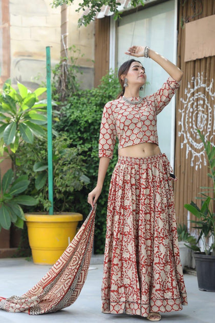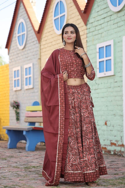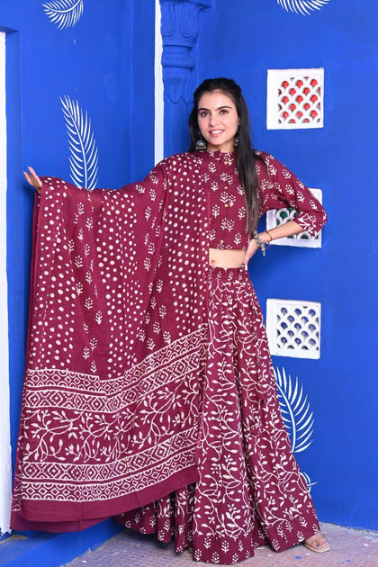 Maroon Colour Bagru Print Flora lehenga choli Set