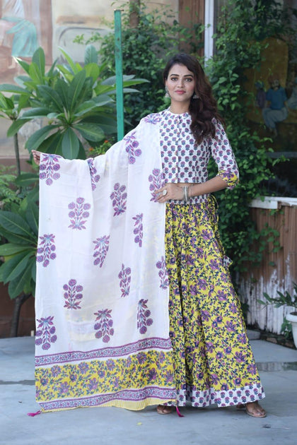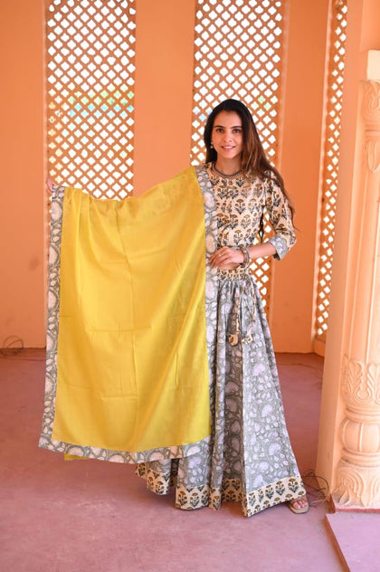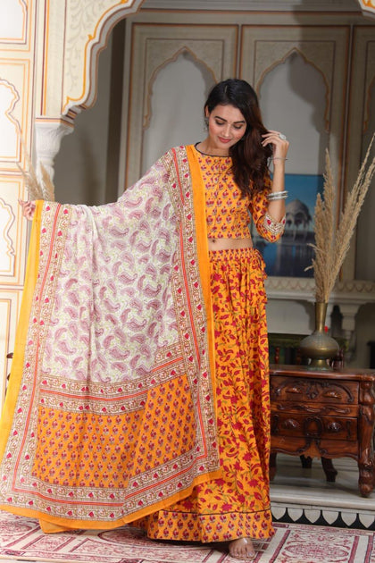 Yellow And Green Bagru Print Flora lehenga choli Set