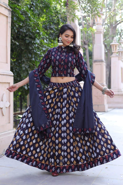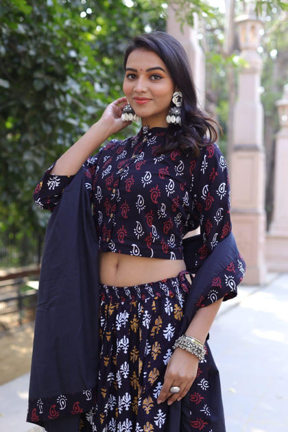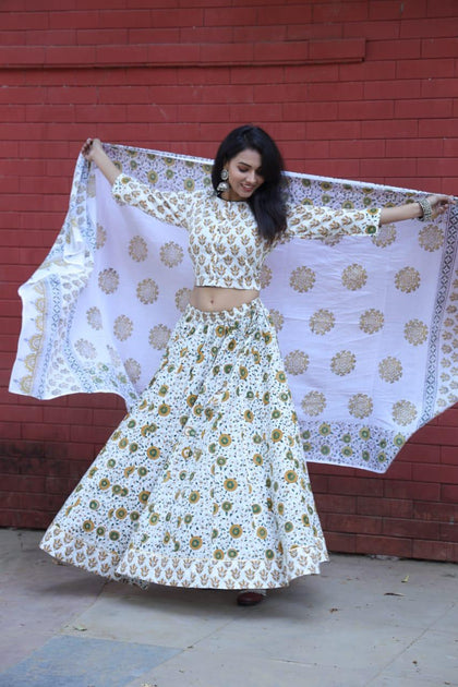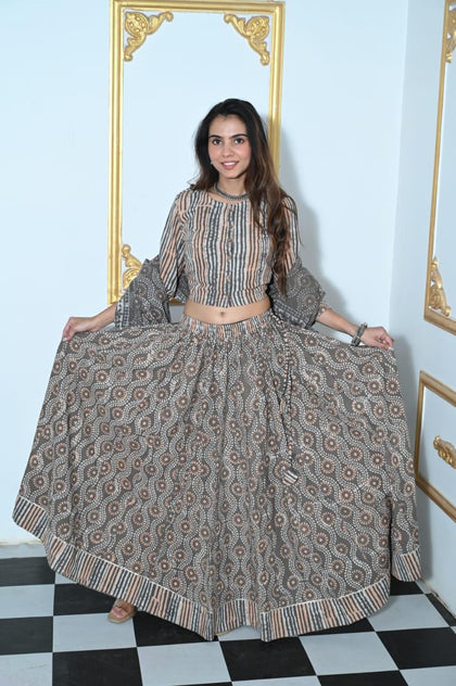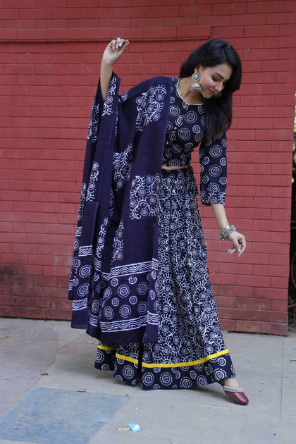 bagru block print lehenga choli for casual events, garbad and wedidng functiions