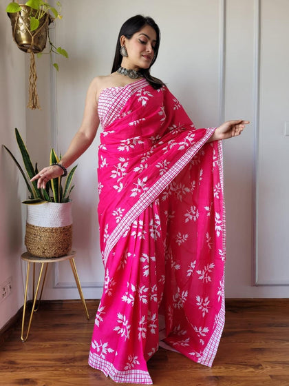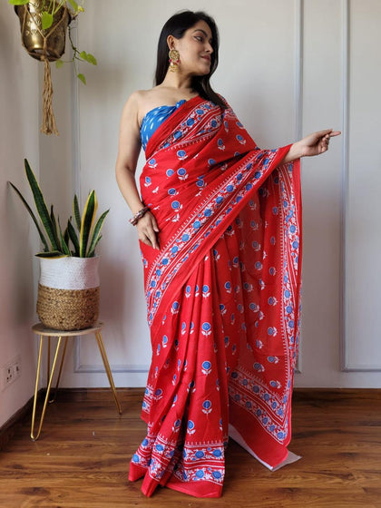 Keeping in mind the newest styles, colors that are in, and patterns, we at Jhakhas have curated a new collection of cotton sarees. We ensure that our patterns, designs and colors match the latest styles for 2024. We bring an exclusive handpicked, curated collection of cotton sarees for you. The collection includes The Classic Cotton Saree, the Chandri Cotton Saree, and the Bagru Print Saree among many other options available. Cotton sarees are the perfect choice for every occasion, whether it's casual wear or a special occasion.