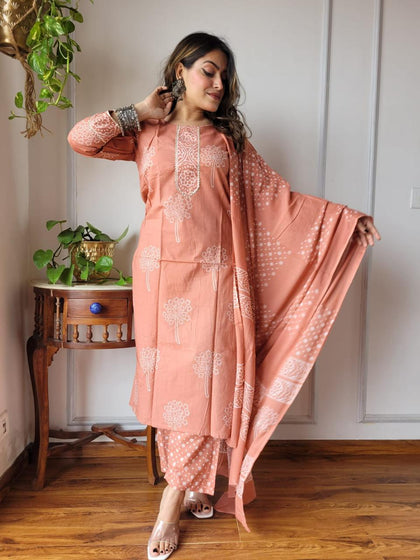 We at Jhakhas are pleased to provide our exclusive line of ready-to-wear cotton suits, complete with matching kurtas, pants, anarkalis, and palazzos, all in relaxed and comfortable styles, just for you.