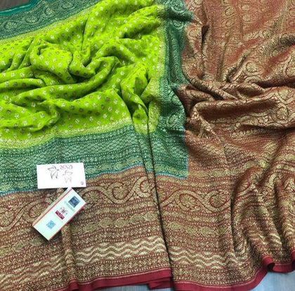 One of the best ways to add tradition and carry Indian heritage with you while looking glamorous at your wedding is to wear traditional bridal banarasi lehengas or bandhani lehengas. Jhakhas.com features some very traditional and exquisitely crafted, richly embroidered banarasi sarees. Such nine yards of beauty would be perfect for a wedding.