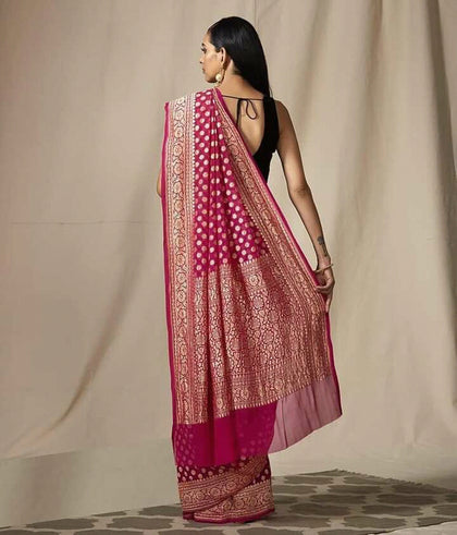 Designer sarees from Banaras are the pinnacle of beauty and have stood the test of time. Some very traditional, beautifully made, highly embroidered banarasi sarees may be found on Jhakhas.com. An exquisite nine yards like this would be ideal for a wedding.