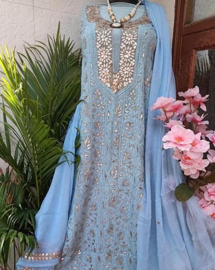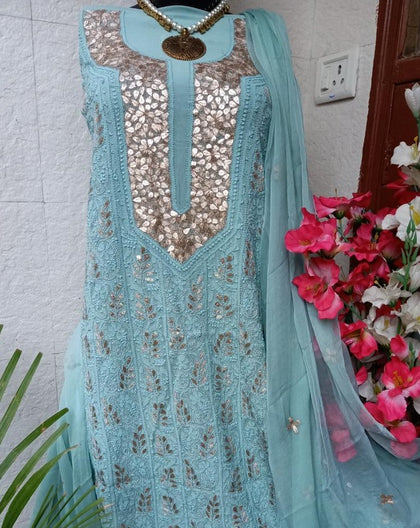 Shop for the best chikankari suits online, Jhakhas.com provides a variety of chikankari suits such as georgette chikankari suits, organza chikankari suits, kota doriya chikankari suits, cotton chikankari suits for you to choose from, whether you're looking for an outfit for casual wear or party wear.