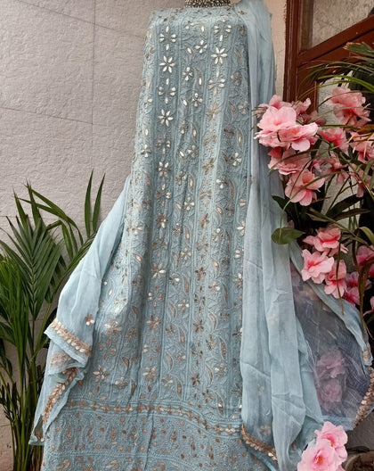 Jhakhas.com 's enthralling heavy chikankari suits, which are decorated with heavy stone work and complex thread, kota doriya, or Gota work, come in a wide range of designs, colors, and sizes. On Jhakhas.com, you will undoubtedly find the ideal Chikankari suit for your body shape and taste. Chikankari sarees suits from our beautifully produced line are the perfect blend of modern and ethnic elegance.