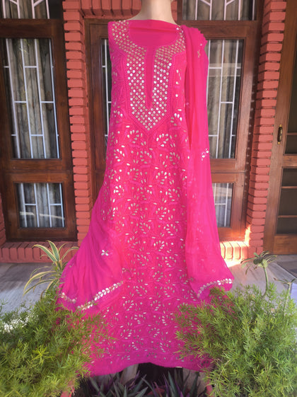 Shop for the best chikankari suits online, Jhakhas.com provides a variety of chikankari suits such as georgette chikankari suits, organza chikankari suits, kota doriya chikankari suits, cotton chikankari suits for you to choose from, whether you're looking for an outfit for casual wear or party wear.