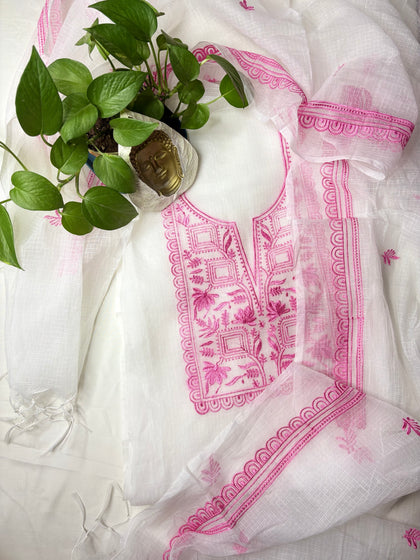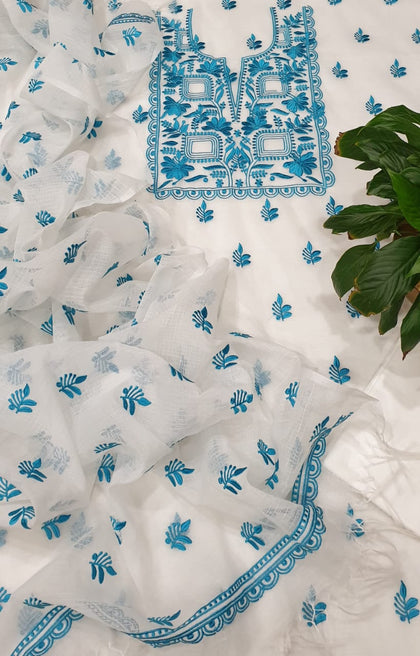 Light and breezy these cotton suits are airy soothing and highly attractive on every body type. This material with gorgeous zari work can be worn at formal occasions, such as a wedding sangeet or Mehendi. Kota Doria cotton suits are known for their versatility and diversity, so pair it with any kind of jewellery, whether gold or silver.
