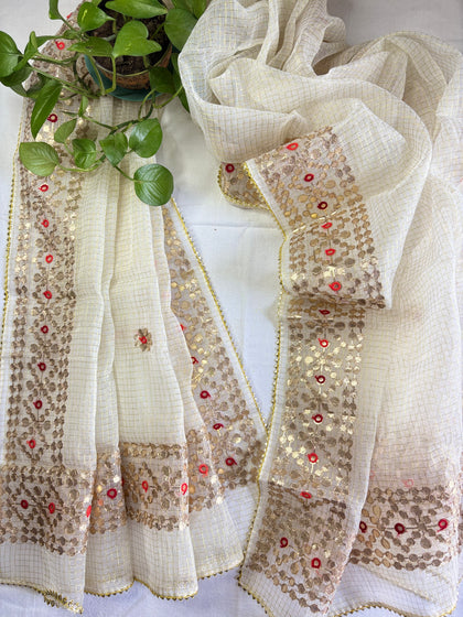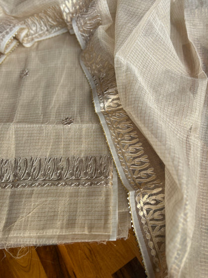 White: For Kota Doria suits, white is a timeless color option. It is pure and simple, and it can be embellished with vibrant embroidery or other materials.