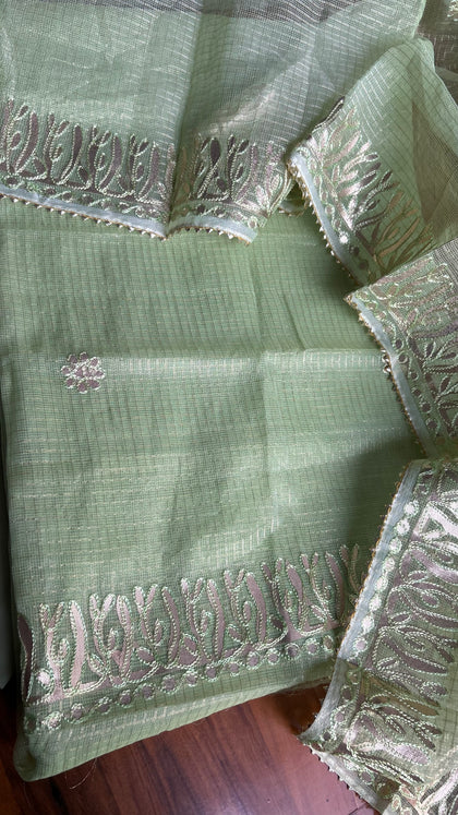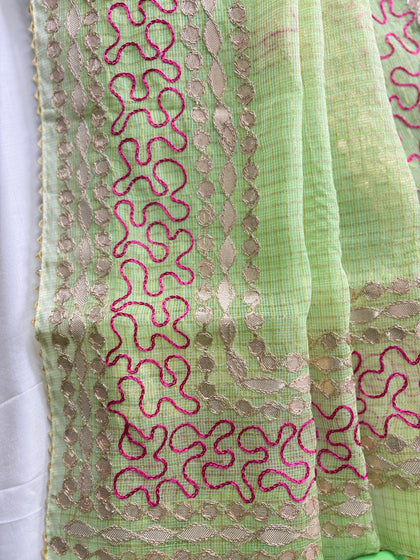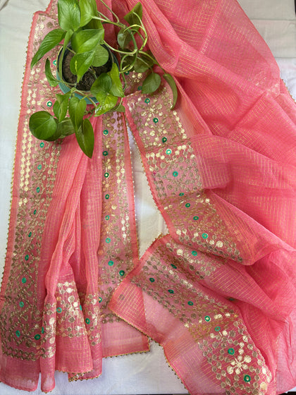 Distinct "Doria" Weave: The cloth, referred to as "Kota Doria," is woven in a distinctive square-checked pattern.