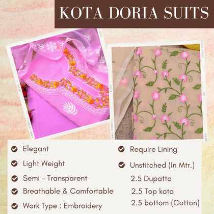 There are a variety of color options when it comes to Kota Doria Unstitched Salwar Suits: