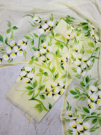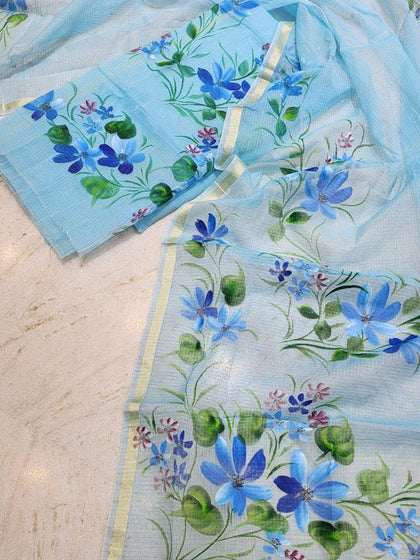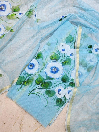 Kota hand painted suits are famous for its fabric, which is breathable, lightweight, and easy to clean. This fabric has a unique feel as well. When handled, it has a rough, unrefined feel that is both smooth and raw. Because of its unpolished vibe, it has some uniqueness. It's smooth and powerful at the same time.Which kind of outfits can you make with Kota fabric?