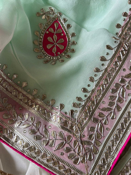 This art, which originates in Rajasthan, has a classic feel to it, making it ideal for all modern brides. Gota Patti work strives to enhance anything and everything, regardless of the fabric's color, whether it pastels or brilliant colors.