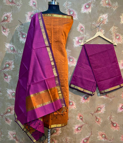 Maheshwari silk fabric is a zari-woven silk and cotton fabric. The fabric was created by Maheshwar residents. Maheshwari Silk is a heritage fabric woven from Mercerized Cotton and Chanderi yarns in the town of Maheshwar, Madhya Pradesh, India. The border design on the Maheshwari fabric is reversible. Both sides appear to be the same. Maheshwari Silk Suit Fabric is a multi-purpose garment made of pure silk and cotton that is appropriate for both casual and formal occasions.