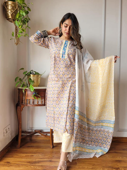Wear your style with ease and comfort as you get ready for a demanding workday. Whether it's a formal business meeting, a WFH day, or a 9 to 5 workday, we've got you prepared with our carefully chosen ethnic clothing that has artistic flair but yet looks polished. Cotton and cotton mix salwar suits along with kota chikankari suits or cotton chikankari suits are one of the most popular choice since they can be sewn in any pattern and are more comfortable than other textiles.