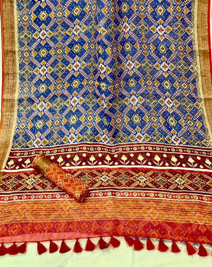 Jhakhas offers premium linen sarees in patola prints that are lightweight and easy to carry. Available in a wide range of colors and patterns these sarees fit your budget and are a lovely addition to your ethnic wardrobe.