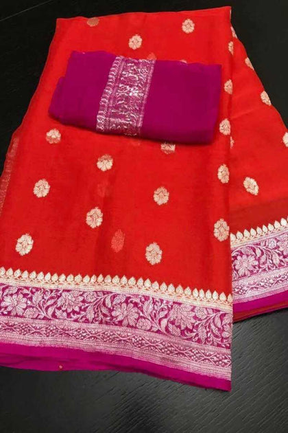Festive Red And Pink Banarsee Khaddi Chiffon Buti Saree