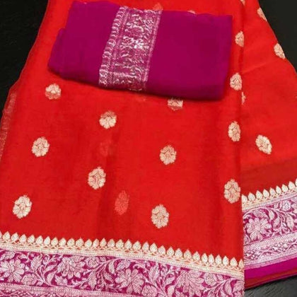 Red Floral Jaal Semi Georgette Banarasi Saree