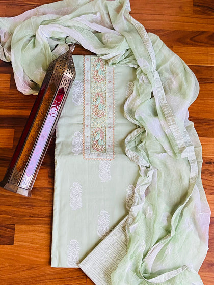 Sequins Suit Set with Embroidery Work in Cream [Semi-Stitched]