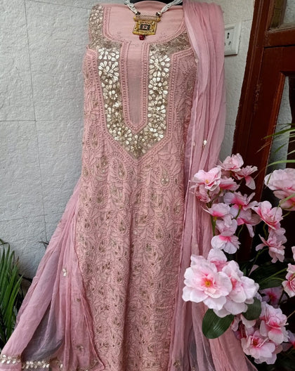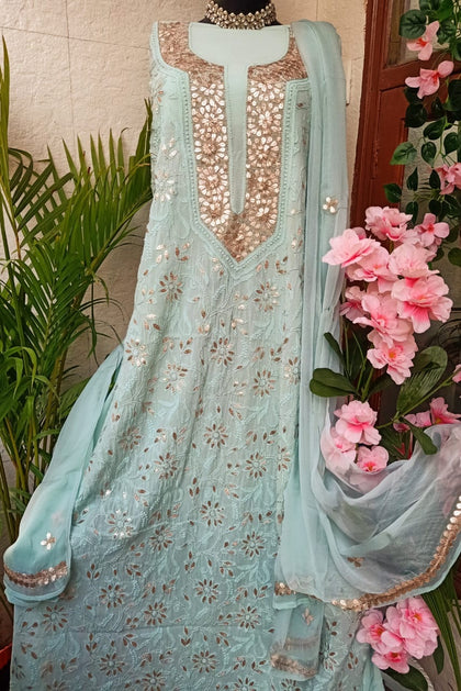 Women can pair their long tunic or kameez with a range of bottoms, including churidar, salwar, and palazzo pants, chikankari pants, chikankari salwars, trousers or afghani salwars. While going for a traditional look the dupatta's add the charm require, however modern looks are worn without odhni or dupatta's