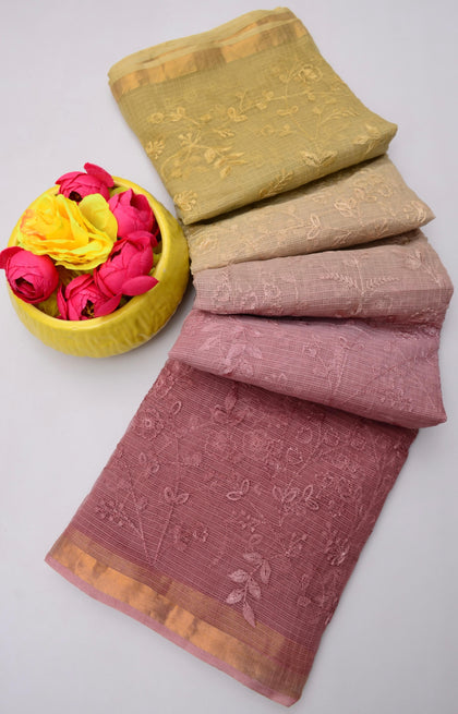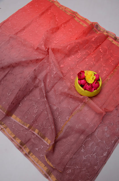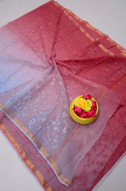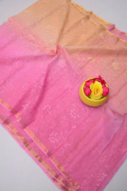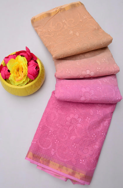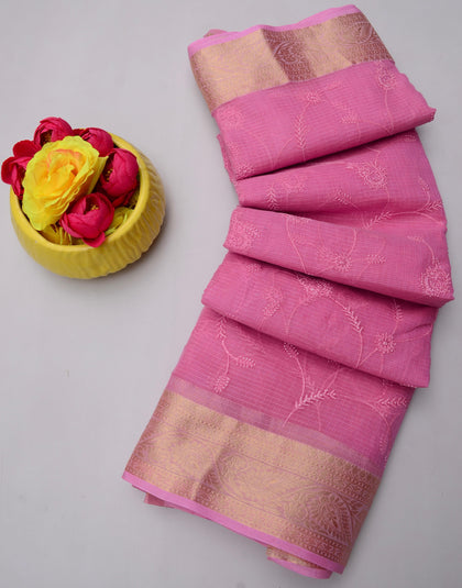 Mohan- Pink Kota Doria Embroidery Work Saree